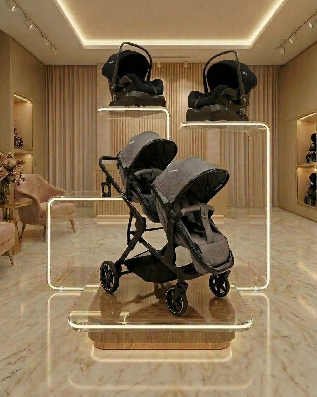 Conteúdo de embalagem: Carrinho + 2 bebe conforto + 2 base veicular + manual de instruções